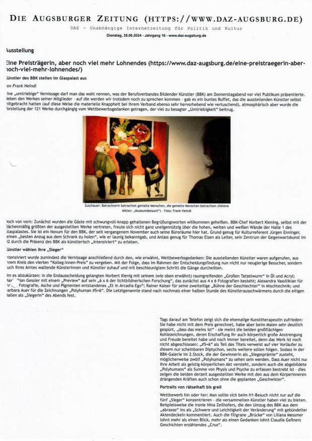 BBK Ausstellung "Members only" in Augsburg Glaspalast Halle 1 Juni 2024, Ausstellungsansicht